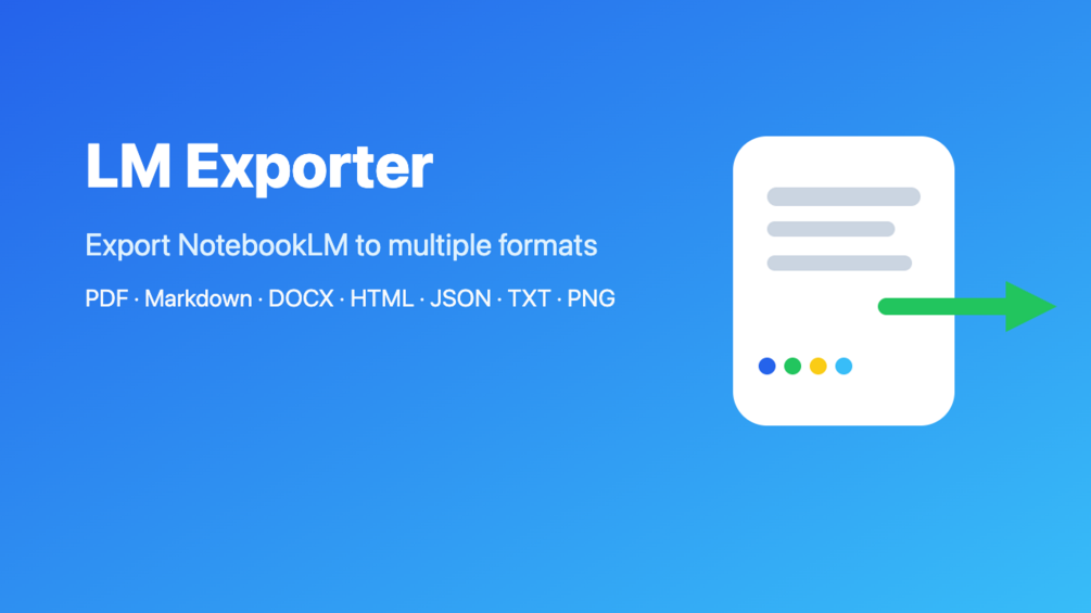 LM Exporter is a professional content export tool for Google NotebookLM, enabling you to easily save conversations and studio projects in multiple popular formats.